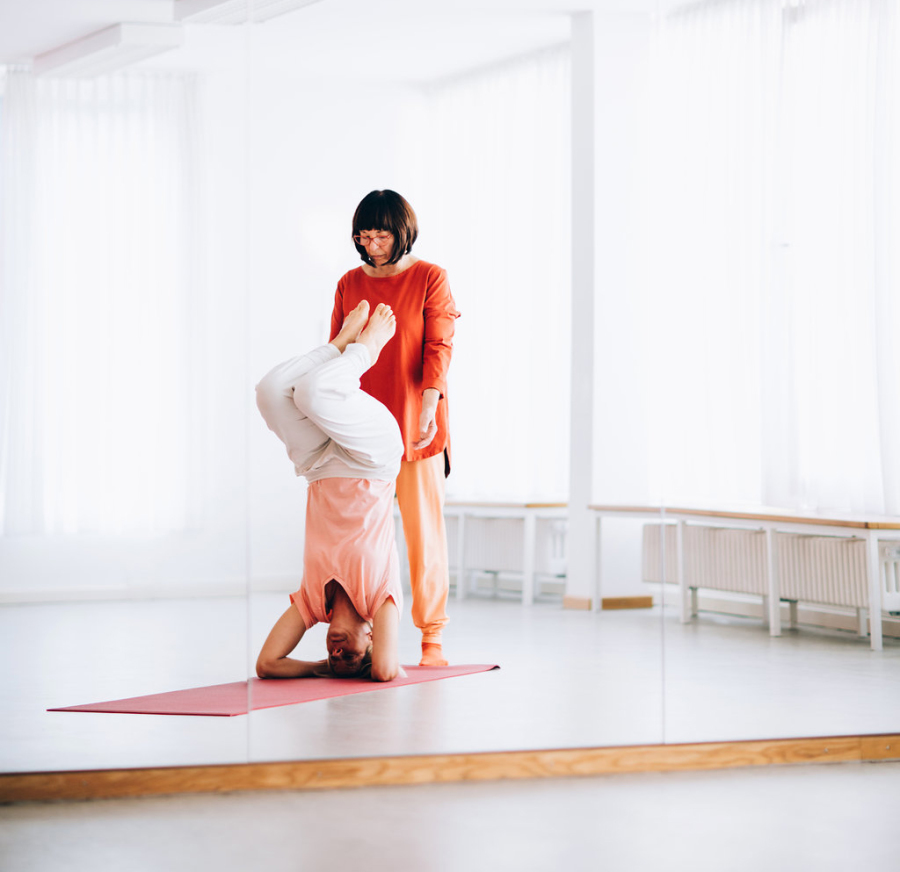 Der Kopfstand (Sirshasana) ist eine instensive Umkehrstellung, die Gleichgewicht, Kraft in Rumpf und Schultern wie auch die Durchblutung fördert.